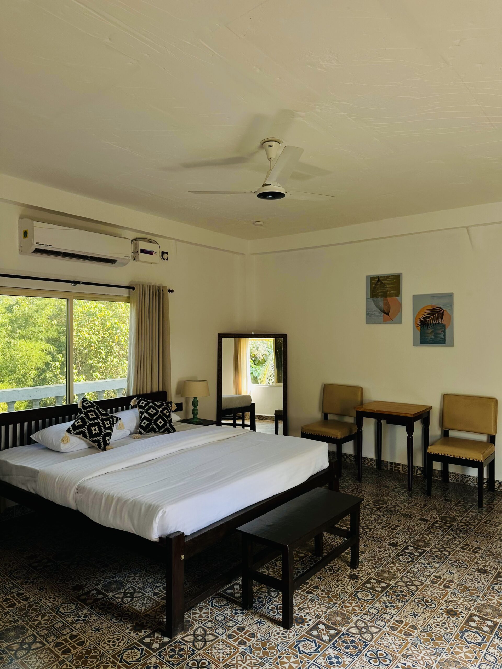 Bhumika by Evaddo, located in Ashwem, offers a variety of thoughtfully designed accommodations including studio apartments, 1BHK, 2BHK, penthouses, and loft apartments. All units are fully air-conditioned and set amidst a tranquil jungle village, creating a peaceful retreat away from the bustle.
